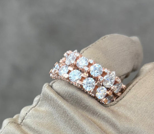 18K Rose Gold Coated VVS Round & Baguette Diamond Chrome Ring